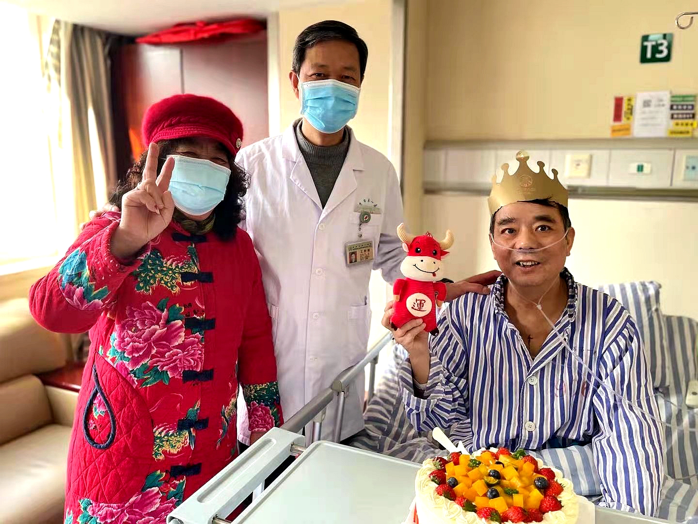 幸运的是,不到一个月时间,王传海等来了合适的供体。经多学科合作,手术团队成功为王传海“换心”,他目前恢复顺利,2月10日顺利转入普通病房。除夕前一夜,母子俩紧紧相拥,庆祝团圆和新生。大年初一,医护人员专程来看望这对母子,还为他们俩准备了一份特别的生日蛋糕。这对母子,分别是南京市第一医院的第1例和第109例心脏移植患者。