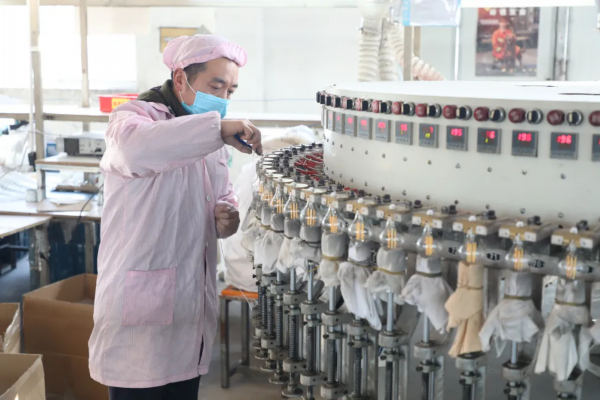 在项目施工现场,塔吊正在一片空地上运作,场面壮观。目前综合楼、辅助用房、辅料仓库主体施工完成,准备主体验收;1#厂房、仓库主体封顶,正在外墙砌筑。“春节后项目已经复工,目前在岗30余人,正在全力以赴抢抓工期。”刘庆卫告诉记者。复工后,该区指导该项目对所有人员进行了施工安全、消防安全、疫情防控等方面的知识培训,确保科学、有序、安全推进项目建设复工复产。 2月18日是新春佳节过后的第一个工作日,记者来到位于涟水经济开发区的淮安强陵照明有限公司,只见高大宽敞的车间内,工人们有条不紊地忙碌着,一条条生产线全部开足了马力。据悉,该公司年产优质节能灯、LED灯等1亿只,主要销往欧美国家,去年实现开票销售超2亿元。今年,该公司于2月15日复工,559名员工目前均返岗到位。 大量科技(涟水)有限公司生产车间内同样是一派火热的生产场景,在宽敞的厂房内,记者看到几个工人正在操作机械设备,由公司研发的高端制造装备自动钻针研磨机正在组装销售,自动抓取、打磨、检测,细如发丝的钻孔针在一台机器里一气呵成。一位来自常州的技术人员小周此时正在对设备进行调试。只见他仔细地查看设备的资料,核对设备相关指标。“因公司订单需求,今年过年,自己响应号召,选择留在涟水不回家了。因为大家都没有回家,所以也就不觉得孤单。”小周告诉记者。作为PCB产业的上游企业,大量科技拉长增粗了电子电气全产业链。“我们2020年生产销售开票9800万元,因扩充发展需求,目前已开始启动扩厂作业,我们公司大年初四就开始复工复产,目前平均月产能已突破30台,我们的目标是2021年销售目标2亿元。” 该公司负责人梁修陶说。 走进锦纶化纤有限公司,只见机器飞转,化纤不断倾泻而出。工人们戴着口罩,保持距离,井然有序地操作机器设备,加紧生产。“今年春节期间公司‘不打烊’,生产线持续开动,公司700余名员工全部在岗在位,加紧赶制订单,复工率达100%,目前已实现满负荷生产。” 公司执行董事陆志栋告诉记者。