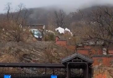 花果山顶又飘雪花啦,山顶只有零度,比地面要低4到5度,大家要注意保暖~