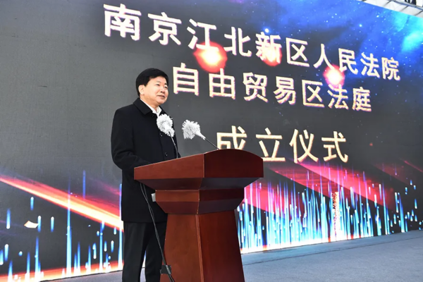 2021年2月26日,南京江北新区人民法院自由贸易区法庭挂牌成立。省法院党组书记、院长夏道虎,南京市委常委、江北新区党工委专职副书记罗群出席成立仪式,南京市委常委、市委政法委书记徐锦辉致辞,成立仪式由南京中院党组书记、院长孙道林主持。