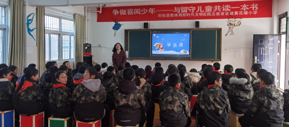 “这人个子不是很高,稍稍有些驼背,笑盈盈地朝我走过来,她就是我母亲的母亲——外婆。”近日,在淮安市盱眙县黄花塘镇中心小学的教室里,“争做喜阅少年——与困境儿童和留守儿童共读一本书”送读活动正在进行,一名身穿志愿者背心的“领读人”正带领着40多名留守娃大声地朗读作家伍剑的小说《外婆》。朗朗书声,在宁静的山村里回荡。