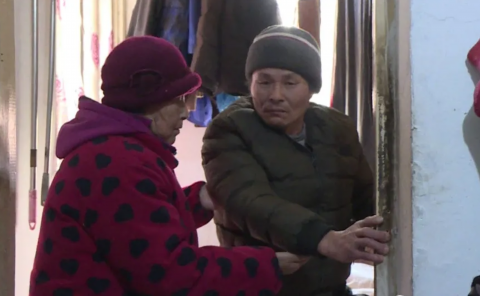金素乔的小儿子徐增东从小因为发高烧导致智力障碍和肢体残疾,现年47岁的他,生活完全无法自理。平日里,除了可以端着碗吃饭,上厕所、穿衣、洗澡等都需要母亲金素乔照顾。