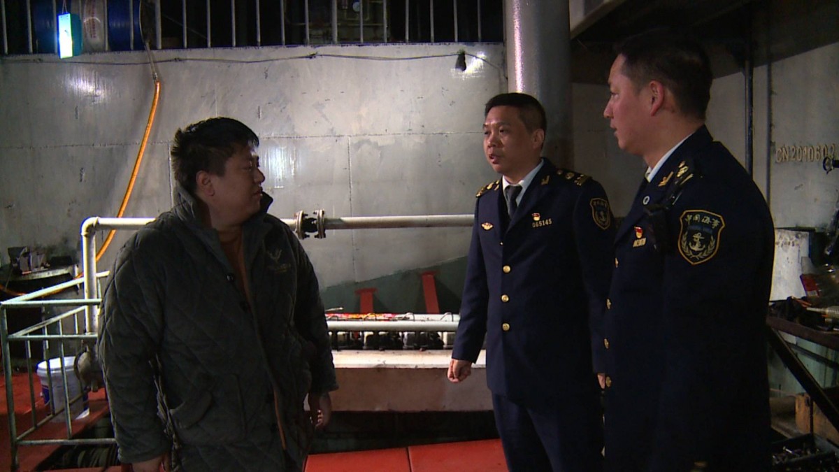 上午,记者跟随海事执法人员来到江面巡查。在一处停泊区,执法人员登上了一艘安徽籍散货船,通过查看船舶管理信息系统,该船生活污水均按规定定期上岸排放。随后,执法人员钻进船舱,发现船舶生活污水直排阀门没有采取铅封措施,存在偷排隐患,当即用铅封条将阀门封死。