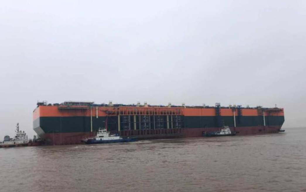 中国船企为非洲项目建造的浮式生产储卸油船在江苏出坞。南通海事局供图