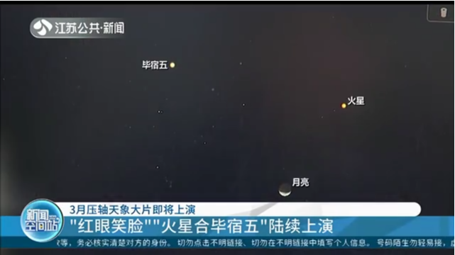 专家分析,如果天气晴好,“红眼笑脸”“火星合月”“火星合毕宿五”这些天象用肉眼就可以看到。如果天气不好,也不要遗憾,今年4月,月球和火星将上演一场更加精彩的天象大戏。