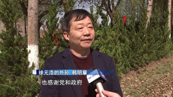 徐元浩的外孙 韩明章:“告慰了我的外公,感谢党和政府对我们家庭和我外公的认可。”