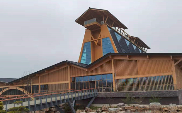 2021扬州世界园艺博览会园区分为“一轴、两脉、五心、八片区”,其中五心即东片区国际馆、开闭幕式馆;西片区中国馆、园冶园和碧云村五个主体建筑。中国馆原为2018年江苏省园艺博览会主场馆,总建筑面积1.2万平方米,由中国工程院院士王建国、东南大学教授葛明领衔设计,其状如峰谷错落,全现代拼装木结构,取意清代扬州湖上名园名画《扬州东园图》题款“别开林壑”,由国家级非遗苏州香山邦传人建造。世园会期间用于园艺主题展,包括花韵长廊、锦绣江苏、园萃芳华(非遗展)、趣享生活、主题日活动多个区域。