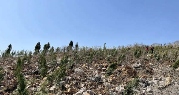 记者在张集镇闫山绿化斑秃补植工程现场看到,工人们正将树苗运输到山体补植点。张集镇闫山绿化斑秃补植工程负责人刘超告诉记者:“种植了侧柏、女贞各1.6万余棵,目前正在浇水施工,主要是保存活,让他们茁壮成长,绿化我们的山林。”