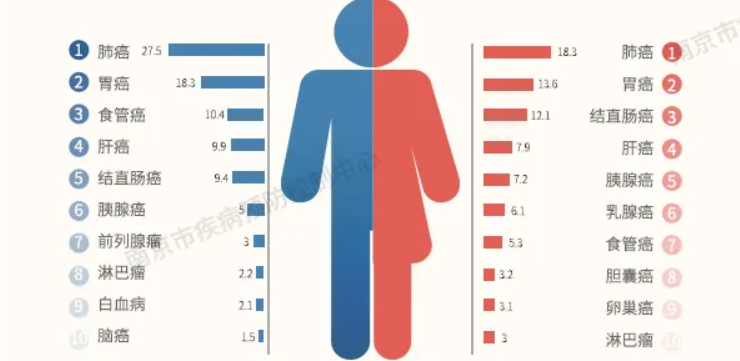 4月12日,南京市疾病预防控制中心发布南京市癌症死亡情况:2020年,南京市恶性肿瘤死亡率前10位依次为肺癌、胃癌、结直肠癌、肝癌、食管癌、胰腺癌、淋巴瘤、白血病、乳腺癌、胆囊癌。