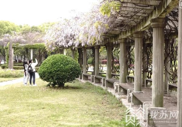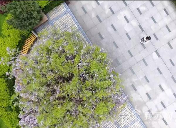 远远望去,整个长廊已经被紫色的花海包裹住了。