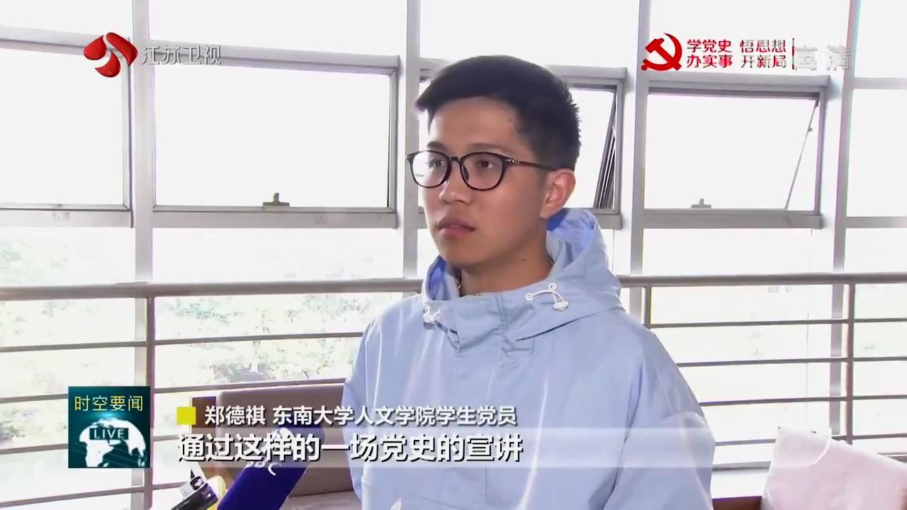 东南大学人文学院党员郑德祺说:“通过这样的一场党史的宣讲,我们从百年党史当中汲取到了很多精神的动力。我们有义务去肩负起时代使命,走进基层,走进农村,走进祖国需要的各个地方,提供自己的青春的能量和智慧。”