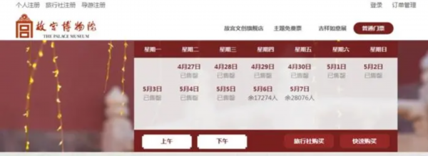 比如,旅游旺季时,故宫博物院经常被人感叹“一票难求”,五一小长假期间也是如此。27日,记者登陆故宫博物院官方网站,发现当日至5月5日的门票均显示“已售罄”。