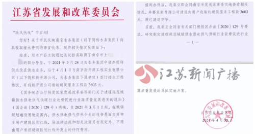5月6日,江苏省发展改革委就此事向《政风热线》发来书面回复,称已会同南京市发改委实地查看相关情况,并要求新开源公司清退了向用户收取的建筑服务工程款。