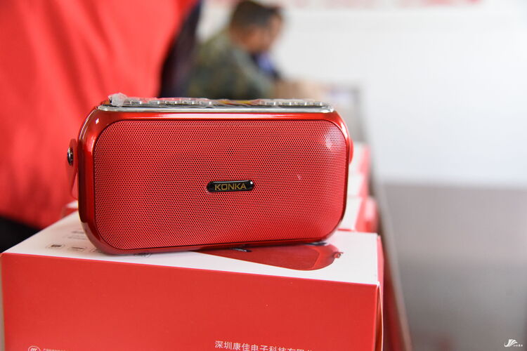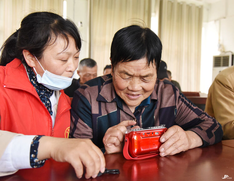 刚一拧开开关,一首洪亮激昂的《唱支山歌给党听》让老党员们听得入了神。