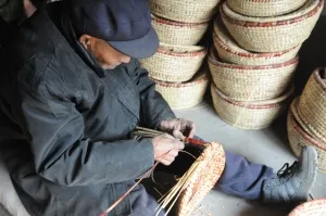 位于徐州市铜山区西北部的薛桥村,田园风光浓郁,属于暖温带半湿润季风气候,极为适宜薛桥草编的原材料——高粱秸的生长,能生长出红、黄、白、奶白等多种颜色的高粱秸。薛桥村素有“苏北第一编织村”之称。