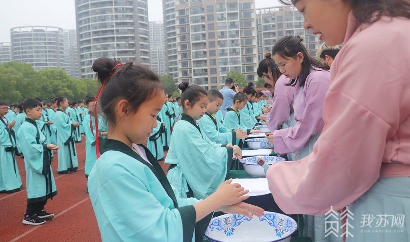 句容经济开发区中心小学副校长纪梅花介绍说:“10岁是孩子成长的界碑,人生中一个重要的阶段。今天的活动既有传统文化铺垫内涵在里面,同时又契合新时代的气息,通过这种特别的‘成长礼’让孩子在参与中学会感恩、懂得分享,在‘八礼四仪’教育中,体验中国传统文化的内涵和魅力,我们也希望孩子们以此为起点,明确成长的意义和责任,做一名新时代的有志少年。”