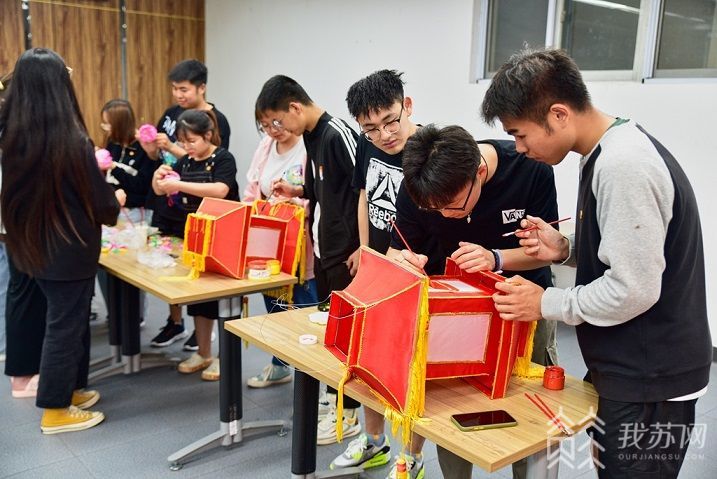 活动中,同学们详细了解了国家非物质文化遗产保护的重要性与秦淮灯彩的来源与发展。随后,在陈柏华的指导下,同学们认真学习秦淮花灯的制作工艺与制作方法,有的用白色乳胶粘花瓣和叶子制作莲花灯,有的用国画毛笔在灯上绘制红船,党徽,有的在花灯上写上“不忘初心,牢记使命”、“为人民服务”等字样,表达对党的百年华诞的深深祝福。同学们在制作花灯作品的同时也感受了手工技艺的文化内涵,领略了非遗艺术的独特魅力。“在这么好的时代,作为我们大学生来说,更要做有责任、有担当的中国青年,一起守护和传承中国的非物质文化遗产,为中华优秀文化的传播与发展贡献力量”。