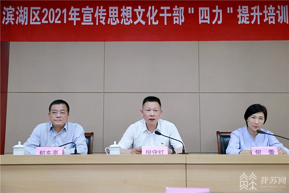 5月8日,无锡市滨湖区宣传思想文化干部“四力”提升培训班在区委党校城中部开班,来自全区40余位宣传思想文化干部集中“充电”。滨湖区委常委、宣传部部长倪守红做动员讲话,并现场开展党史学习教育专题党课。此次培训为期5天,宣传思想文化干部们赴扬州进行深度学习,提升业务水平。