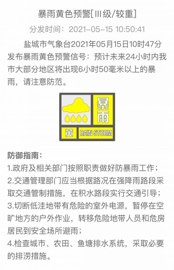 受西南暖湿急流和低层切变线共同影响,昨日05时到今日11时盐城出现小到中雨,局部大到暴雨。