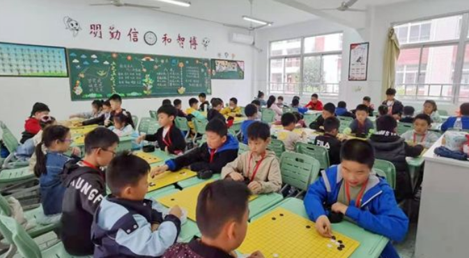 以棋会友、切磋技艺,整个现场安静有序,只闻落子声……比赛中,小棋手们迅速进入状态,个个眼尖手快,时而进功、时而退守,巧妙回旋,你来我往,在无声的棋盘战局上进行着激烈的博弈,每走一步棋都扣人心弦。别看他们年纪不大,但每个人都对每一步棋的走势都十分谨慎,他们或眉头紧锁,或托腮沉思,全神贯注地落好每一个棋子。