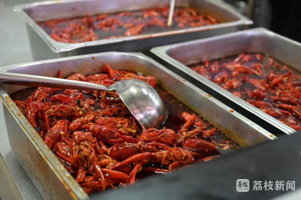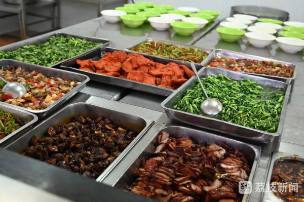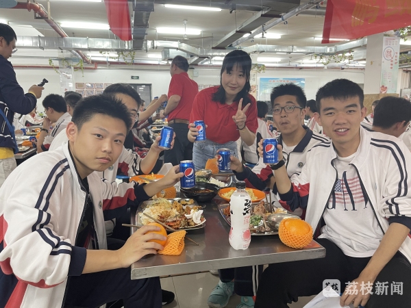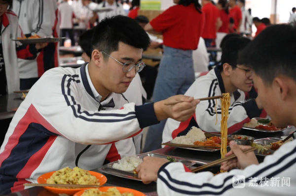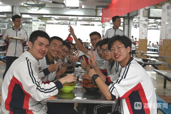11点多,在南京市第十三中学食堂,香喷喷的饭菜准备好,辣子鸡、咕咾肉、里脊肉、龙虾……道道美食等待着620多名高三学生免费品尝。