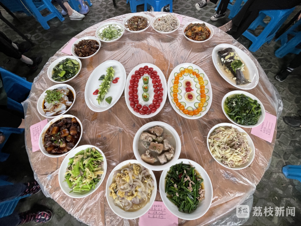 百菜迎百年,乡村共振兴。经过一番煮、煎、炸、炖、蒸,100道香味十足味道诱人的乡村菜肴一一展现在大家面前。评委们从味感、质感、观感、营养、创意等多个方面进行评分,评选出一等奖1户,二等奖2户,三等奖3户。