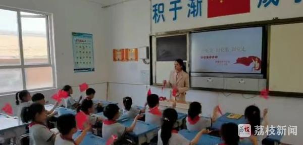 活动中,同学们在操场上、教室里、党旗前齐声高唱《没有共产党就没有新中国》。“这首歌,我的爷爷、奶奶、爸爸、妈妈都唱过,现在我也学会了这首歌,歌词里的话都能在生活里感受到,唱起来很自豪。”一位同学告诉记者。