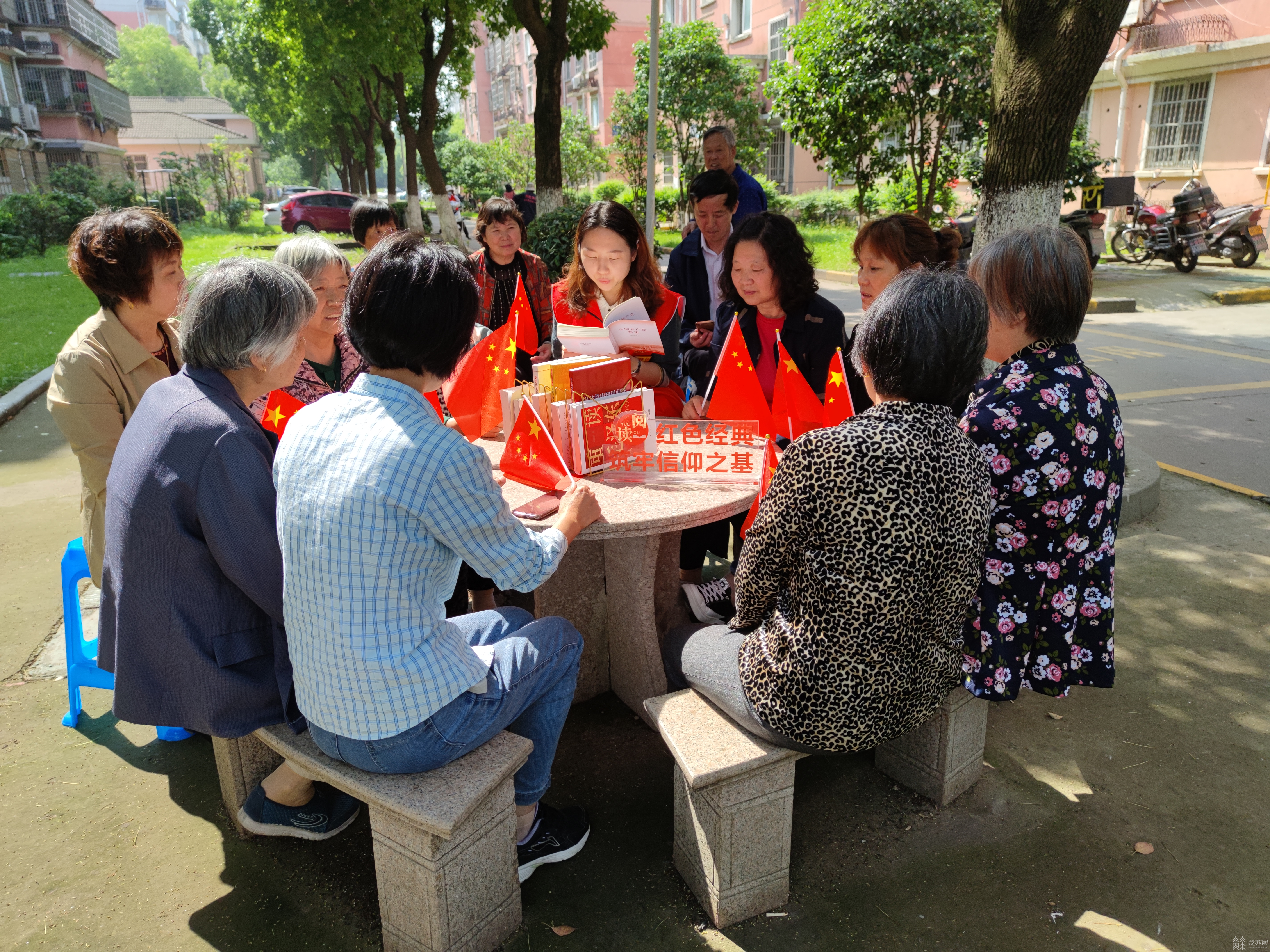 口耳相传,青老党员用初心对话。社区把党史学习教育延伸至社区小广场、党员的家门口,通过重读百年党史、重忆入党初心、重温经典红歌等环节,让伟大事业不绝于耳,激励着党员们从历史中汲取前进的力量和涵养初心的养分,践行共产党员的使命与担当。近日,南星苑第一社区第四党支部就在居民楼道门口的休闲凉亭处,组织支部党员围坐在了一起,共同学习《中国共产党简史》中的《中国共产党的成立和民主革命纲领的制定》这一篇章,并引导青老党员依次分享了自己的入党初心故事。随后,大家用饱满的热情、嘹亮的歌声共同唱响《没有共产党就没有新中国》《驼铃》等红色歌曲,“我们90后是幸福的一代,我也想为建设美丽家乡贡献自己的力量!”青年党员陈颖洁深有感触地说道。