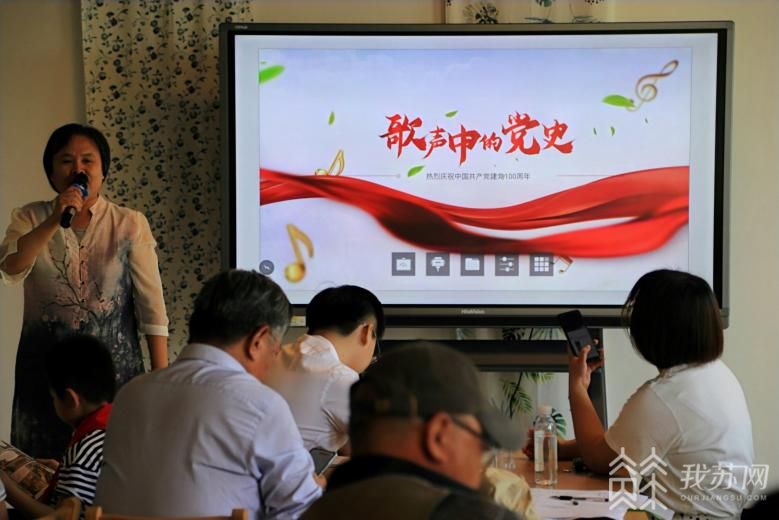 耳到:听红歌,接力唱,讲党史,动人旋律寻党味。在红歌接力环节,随着旋律响起,党员们纷纷举手,抢答歌名,过程中,大家兴致勃勃地接唱歌曲,你来我往,歌声中表达出对党的热爱,《我和我的祖国》、《北京的金山上》、《南泥湾》、《十送红军》,《国际歌》这些耳熟能详的红歌通过党员的集体演绎别有韵味。党总支书记现场给大家介绍了《国际歌》的创作契机与历史背景。老党员杨雪芬最后领唱了《走进新时代》,并与大家分享了当年参加建党70周年歌唱比赛获奖的趣事。