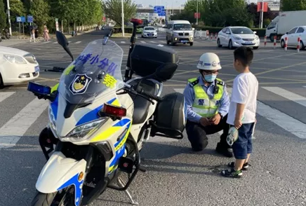6月8日下午,民警徐登祥在淮海中学门口执行高考安保任务即将结束时,突然发现一个四五岁的小男孩在车流里穿行,徐登祥立即上前领着小男孩通过马路。经询问,小男孩从幼儿园放学时,与其父亲发生一点不愉快,害怕父亲打他,便独自往相反方向离开,一直走到淮海中学门口被执勤民警发现。