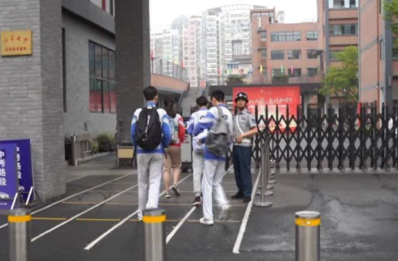 在校门口,老师身穿红色旗袍,用微笑迎接着每一位即将走上考场的学生,声音热烈地喊着"加油 ",希望考生们都能自信从容地迎接他们人生中的第一场大考。
