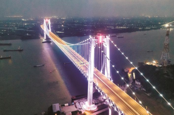 五峰山过江通道是省内首个“未来智慧高速公路示范工程”,其中跨江大桥是我国大陆首座公铁两用悬索桥,将于今年6月建成通车。