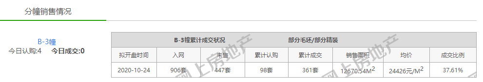 图为南京网上房地产显示的都荟天地城B—3幢房源和实际销售情况