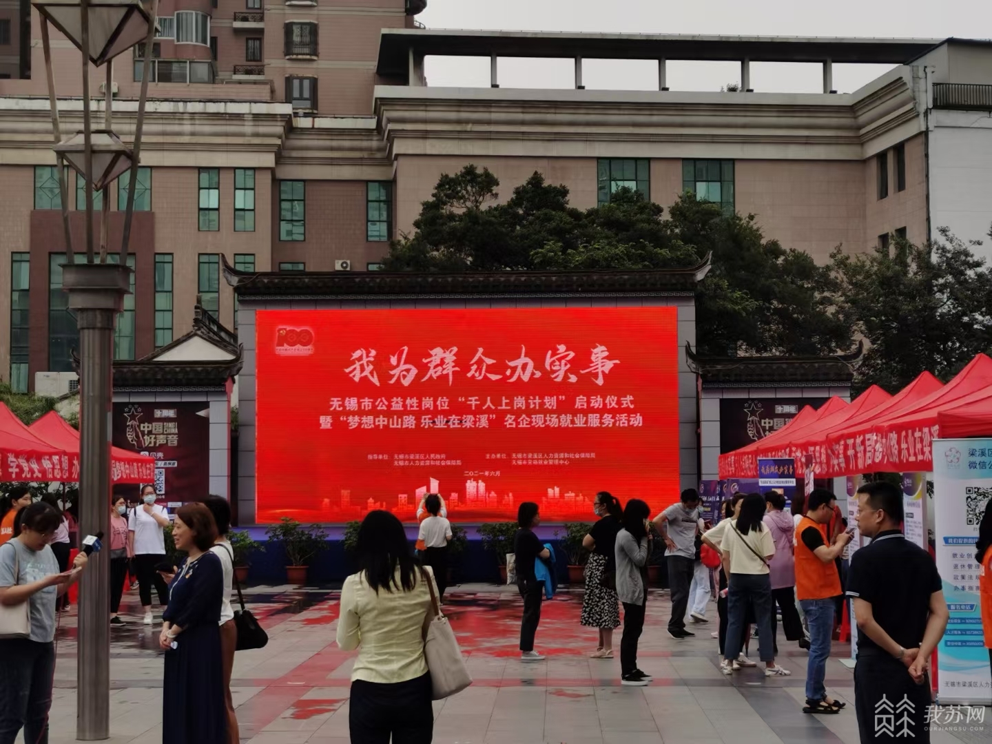2021年6月19日,由无锡市劳动就业管理中心和无锡市梁溪区人力资源和社会保障局主办的无锡市公益性岗位“千人上岗计划”启动仪式暨“梦想中山路乐业在梁溪”名企现场就业服务活动在崇安寺二泉广场举行。活动围绕“千人上岗计划”,突出名企招聘会主题,融合主题党日活动、“乐业梁溪”品牌推广、技能展示体验等五大内容设立五大区域,吸引群众参与1400余人次。