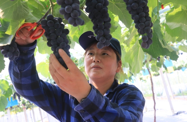 据了解:目前成熟的葡萄是由省农科院自主培育的一个新品种葡萄,叫做“紫金早生”,它具有成熟期早、抗病性强、栽培省事等特点。对于农民栽种来说,该品种可以省下人工量30%左右,属于“懒人都能种”的品种。葡萄种植户张奎峰去年试种了之后觉得不错,今年又继续扩大了规模。“等于懒人模式,就掐过一次头,就修一次花修一次果,就这样子了,所以这两年我觉得值得推广。”