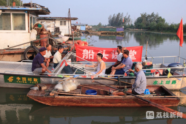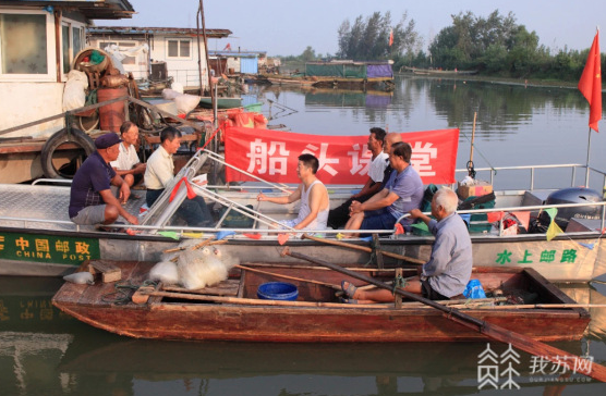 党史学习教育“陆上”开展,也不能忘了“水上”区域。自洪泽湖开展治理以来,多数渔民已上岸安家,但仍有部分渔民居住在偏远湖区,洪泽区利用水上执法船、湖区邮递船等工作船只,开设船头课堂,为湖区党员群众开展送教上门,让党旗飘扬在湖区一线。水警大队、水政监察大队在日常巡查工作中利用执法船在湖上开展“湖心党课”,邀请湖区党员群众加入学习队伍,建立学习群组,及时传递党的声音。“唐老师经常来我们船上开讲,”渔民王泽业告诉记者,“他用方言讲,好得狠呐!”渔民口中的“唐老师”便是“中国好人”、全国道德模范、洪泽区邮政局老子山支局邮递员唐真亚,党史学习教育开展以来,他积极化身“宣传员”,主动承担宣讲工作,真正将党史学习教育做到一线。“我是党员,走到哪就要把党的‘好声音’传播到哪。”唐真亚说。