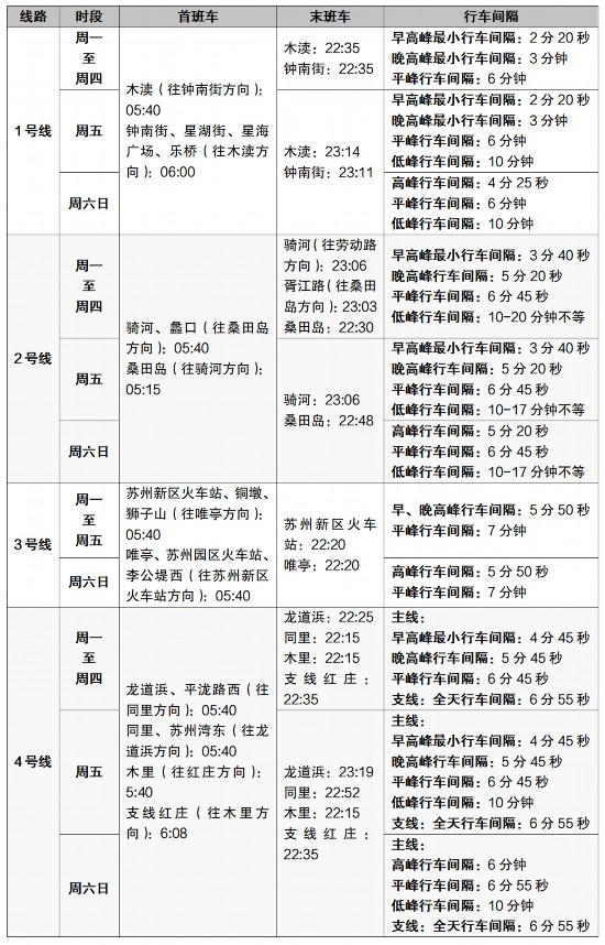 工作日延长1号线木渎往钟南街方向早超高峰覆盖时段,最小行车间隔2分20秒的覆盖时段由30分钟延长至1小时,进一步提升运力。