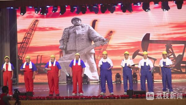 在杜敏助理员的主讲下,第二篇章“改天换地”正式开始。扬州大学音乐学院师生展示了表演唱《唱支山歌给党听》、小提琴重奏《我的祖国》、男声小合唱《我为祖国献石油》。