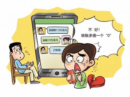 然而,就在转账完成的那一刹那,王先生突然反应过来,自己在输入金额时多摁了一个“0”,导致转账金额从1.9万余元,一下子变成了19万余元。