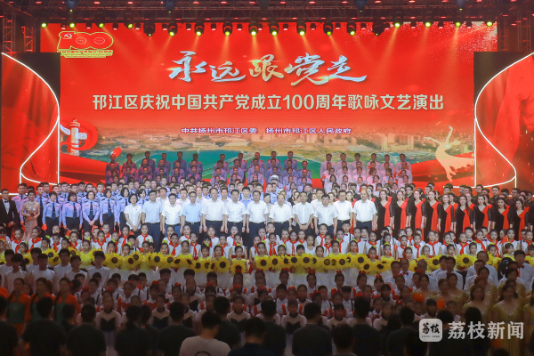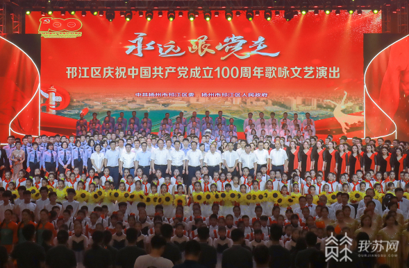 汇演在全场齐唱《没有共产党就没有新中国》落下帷幕。未来,邗江人将以脚步去丈量、用双手去创造,为建设社会主义现代化新邗江而努力奋斗!