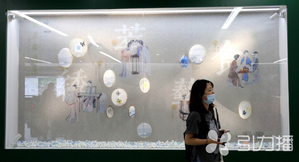 其中,《彩虹通道》的拱门如同一架架彩色的竖琴,而苏绣的绣线是琴上丝弦;名为《丝路》的艺术装置,密密的多彩丝线从地面向空中延展,仿佛一道天路。苏绣与数字技术相结合的艺术装置则颇具新意:《花鸟鱼虫》作品前安装了全息风扇,风扇打开后,只见花瓣、飞鸟、游鱼、蝴蝶在空中飞舞旋转,给传统苏绣增添了时尚的气息。
