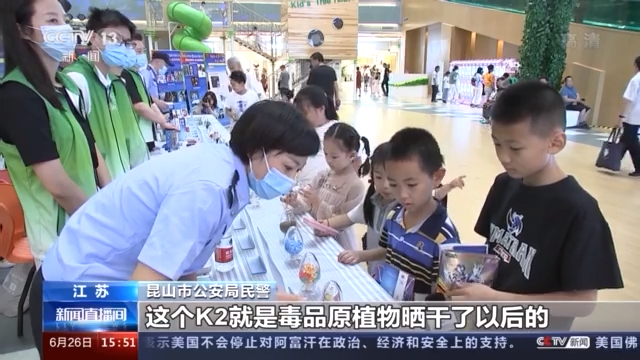 昆山市公安局民警:这个就是毒品的原植物,原植物懂吗?就是叶子、根啊,晒干了以后的。这个K2就是毒品原植物晒干了以后的,特别像茶叶,对不对?所以我们也可以回去给爸爸妈妈们讲,有些毒品伪装得就特别像茶叶。