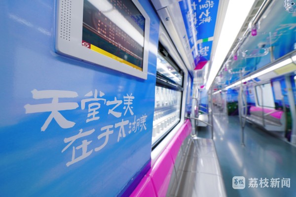 “线”即开设文化专列,本次推出1列太湖主题列车,以樱花、梅花、荷花、银杏及水风车、芦苇荡为元素,着重装饰列车6节车厢,展现太湖优美的自然风光,让乘客身临其境、神游物外。