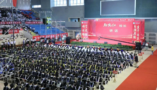 6月23日,江苏大学2021年毕业典礼暨学位授予仪式在学校体育馆举行,11305名本科、硕士和博士毕业生顺利完成学业,为自己的江大岁月画上圆满的句号。典礼伊始,全场师生共同观看了学院院长寄语视频短片以及毕业纪念视频短片,一段段深情的期许、一幕幕熟悉的场景引发全场师生的共鸣。典礼上,师生代表同台表演了情景朗诵《向祖国报告》,展现了江大师生逐梦江大、奋发向上的精神风貌。仪式尾声,全场起立,齐唱校歌《百年辉煌向未来》,表达对学校真挚的祝福和对莘莘学子美好的祝愿。