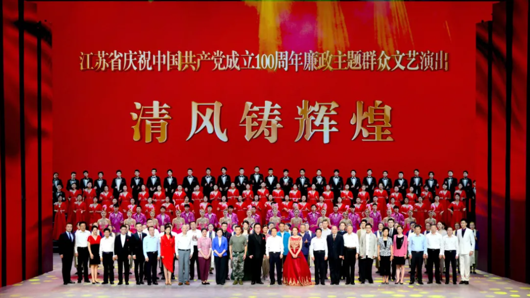 我苏网讯 6月26日晚,由江苏省纪委监委机关指导,江苏省文化和旅游厅主办,江苏省文化馆承办的“清风铸辉煌——江苏省庆祝中国共产党成立100周年廉政主题群众文艺演出”在江苏大剧院举行。