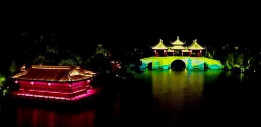 夜幕降临,华灯初上,烟雨朦胧中,瘦西湖里灯火璀璨、如梦如幻。五亭桥、白塔在绚丽光影的投射下,变幻出不同特效,唯美的灯光秀让市民游客直呼精彩。