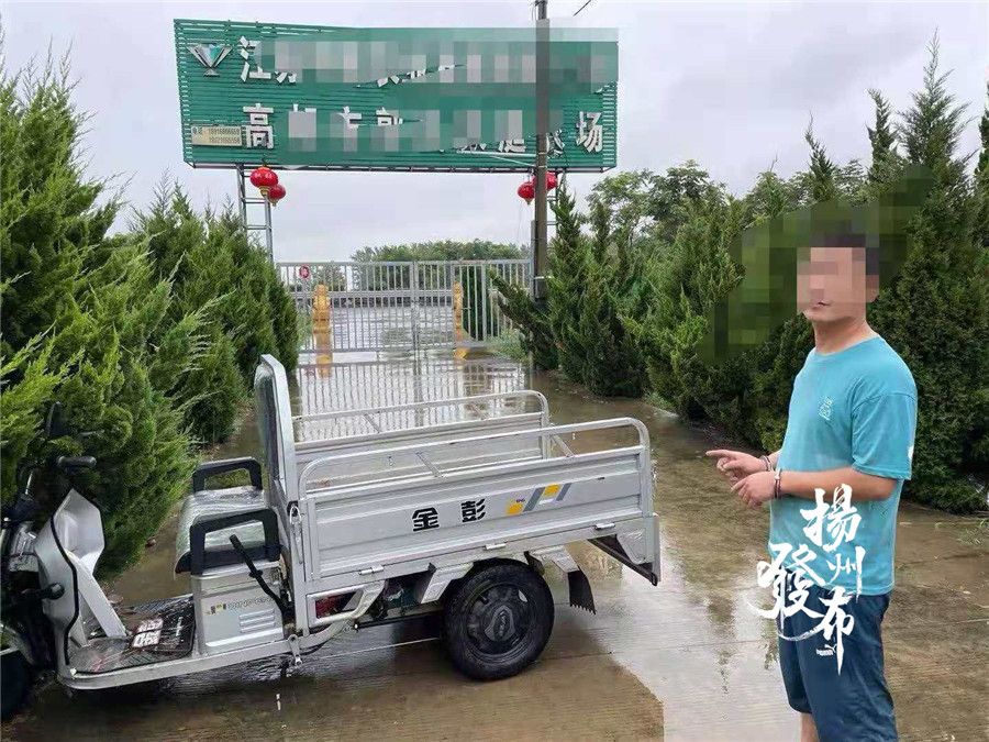 突然,电话响了。接听电话过程中,他无意间回头看了一眼,发现有个人正在田边骑自己的电动三轮车。