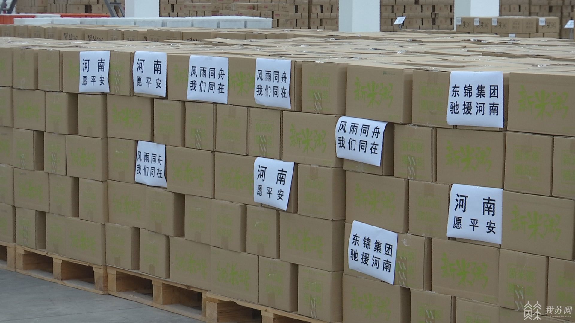 7月23日下午,记者来到无锡市滨湖区蠡湖街道胡埭工业园区里的一家食品企业厂房,只见厂区热火朝天,当天,满载着2000多箱、80000多袋即食粥的顺丰运输车从厂区缓缓驶出,该批驰援河南防汛一线的爱心物资总价值近60万,从无锡发出后,预计将于明早6点抵达郑州,并被迅速送往中牟县防汛一线和中原区红十字会。