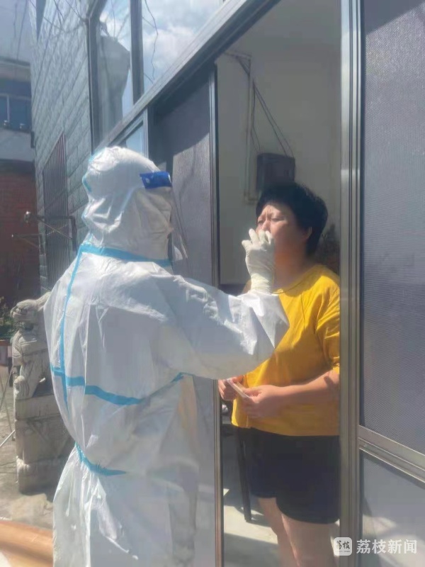 当时,村里近300位常住人口都已经完成核酸采集,仅剩下两名“特殊”村民没有采集,一名是因在禄口机场工作居家隔离的,另一名是聋哑人伴有精神障碍的村民。他们将入户为居民提供服务。3名核酸采样的医生因考虑穿上防护服行动不便,如坐车在密闭的空间里存在安全隐患。这时,有村民主动提出开三轮车送医生到村民家去采集。当时陪同前往的村干部骑着电动车跟拍下了这个过程,因此就有了网络视频上的那一幕。