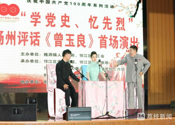 槐泗镇深挖红色资源,经过两个月创作完成中篇评话《曾玉良》。整部节目分为设宴、救人、就义三个部分,每个部分由3名演员表演,演出时长70分钟。槐泗镇在各村(社区)组织评话《曾玉良》巡演活动,通过评话书场的方式,演绎“老乡先烈”英雄事迹。每次演出时,台上演出投入,故事演绎精彩,英雄形象呼之欲出;台下观众看得认真,沉浸其中,深受感染。槐泗镇通过群众喜闻乐见的评话艺术形式讲述英雄故事,坚定了人民群众传承红色基因、奋进崭新征程的坚定信心。